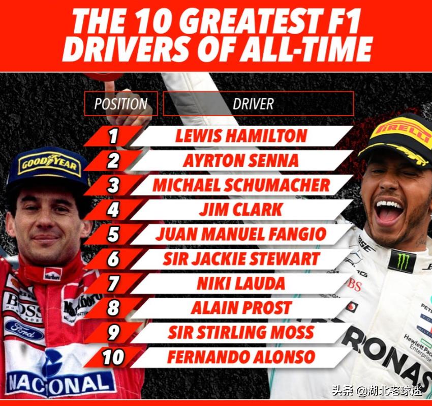 或许是不甘心输掉去年的比赛,又或者是这份名单其实是他们为汉密尔顿拿到第八个总冠军精心准备的礼物。榜单和大多数的车迷想象中的都不一样,7冠王舒马赫只排名第三,能比肩马拉多纳的方吉奥只排名第五。而刘易斯爵士居然排名第一!